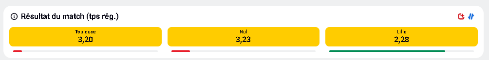 Prenons un match de Ligue 1 entre Toulouse et Lille. Voici les cotes affichées sur Betclic.fr au moment de l’analyse :